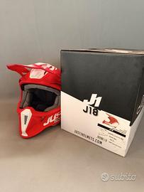 Casco motocross enduro Just One Pulsar 18 taglia S colore rosso e bianco nuovo con sacca porta casco prolunga visiera per fango e scatola.