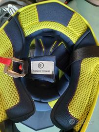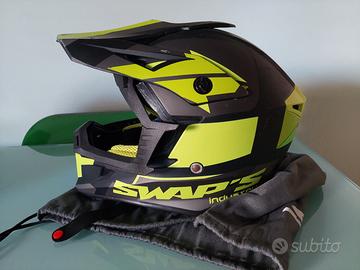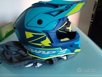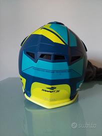 N.2 caschi motocross taglia M57-58. usati forse 5 volte da ragazzi per minimoto. interni in perfette condizioni, esternamente qualche segno dovuto a cadute in terra per distrazione. A causa dell'inutilizzo ci sono delle parti in gomma che si sono scollate e sono da incollare.