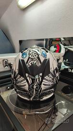casco in perfette condizioni adatto ad adulti S o bambino gli adesivi blu sono stati aggiunti il casco e bianco e nero