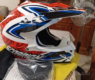 Come da titolo casco motocross scorpion taglia M come nuovo utilizzato una sola volta con il sottocasco integrale, ci sono alcuni segni poco evidenti da un lato perché è caduto dalla sella della moto . Nel complesso è pari al nuovo con i suoi accessori e sacca originale. Ritiro solo a mano non mi è possibile spedire purtroppo.