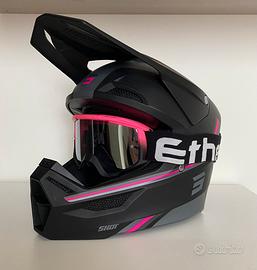 Insieme vendo anche visiera Ethen fucsia e nero opaco. Ha un leggero graffio che non si nota all’interno quando sono indossati.