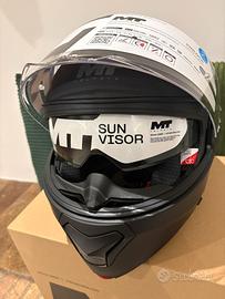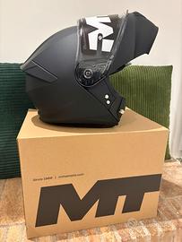 Vendo bellissimo casco modulare MT HELEMETS pure black matt ancora da aprire,nuovo! Casco con prese d’ aria e doppia visiera integrata( scura e chiara ).Taglia L. Casco NUOVO con sacca di protezione targata MT HELEMETS. NO PERDITEMPO!