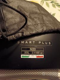 Calotta esterna in Lexan da General Electric. Visiera antigraffio con sfumatura azzurra in stile aviatore. Chiusura con cinturino Microlock con imbottitura nel sotto mento. Imbottitura interna "Top Comfort Light", smontabile ed antibatterica. Protezione del collo (neck roll), smontabile.