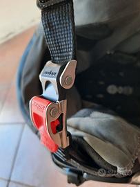 circonferenza testa 55 - 56 cm. Usato, qualche segno sull' involucro e imbottitura interna con segni di usura sulla stoffa e sulla gomma piuma che inizia a sfogliarsi. In ogni caso ancora funzionale, gancio ok. completo di visiera parasole. vendo visto e piaciuto.