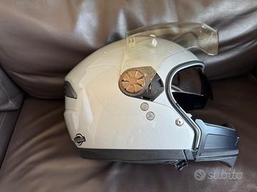 Casco Nolan N43 AIR Platinum Silver, misura XS, crossover in policarbonato con mentoniera asportabile, prese d’aria, mini spoiler e predisposizione Bluetooth. Interni amovibili, visiera parasole interna. Usato sporadicamente, presenti segni di usura come da foto e interni sostituiti da non molto.