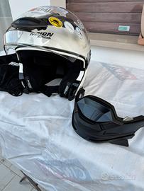 Vendo per cambio taglia casco nolan n44 nuovo ,mai usato ,completo di pellicola ,scatola originale e accessori tagliaXS.IL casco ha la mentoniera staccabile e diventa un jet ,con la mentoniera e’ omologato integrale .disponibile per altre foto per chi fosse seriamente interessato.