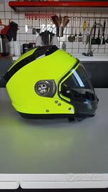 Casco color Giallo Fluo, in ottime condizioni, Calotta casco policarbonato, Doppia omologazione casco Jet / Integrale. Peso: 1595 gr.