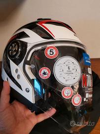 Il casco è NUOVO, leggero, versatile con la mentoniera staccabile, ampia visiera e lente solare di facile gestione e completo anche di aletta parasole da montare a piacere.