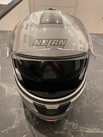 Casco modulare Nolan di manifattura italiana, in ottime condizioni, ad eccezione di un piccolo difetto estetico sul retro, dovuto a rimozione di adesivo, nessuna caduta. L'imbottitura interna è amovibile e lavabile. Il casco Nolan N91 EVO ha una doppia omologazioneP/J e Dual Action, atto a ridurre il rischio di apertura accidentale della stessa. Completano il prodotto lo schermo parasole VPS con protezione UV 400, il sistema di ritenzione Microlock2 a doppia leva e la predisposizione per il sistema di comunicazione N-Com. Usato solo un’estate e poi riposto in armadio. Compreso di scatola e sacca originale. PREZZO TRATTABILE