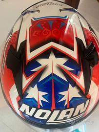 CASCO NOLAN REPLICA STONER TAGLIA M, visiera trasparente! Usato poche volte presenta come si vede in foto qualche graffietto nella parte posteriore fatto dal passeggero! Per il resto viene venduto igienizzato, con la sua sacca originale!