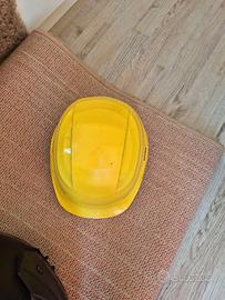 Caschi usati e un casco da cantiere nuovo