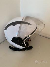 Casco Demi-Jet con chiusura a fibbia, doppia visiera antigraffio e imbottiture traspiranti estraibili per essere lavate. La misura XS, lo rende principalmente adatto per gli adolescenti o per la categoria femminile che tipicamente hanno una testa piú piccola.