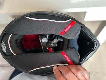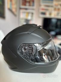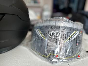 Vendo causa acquisto taglia errata, casco PREMIER DEVIL NERO OPACO U9 BM tg XS. Calotta esterna in fibra aramidica in carbonio (Dyneema) Perfetto come nuovo, mai usato, completo di visiera addizionale scura. casco integrale per uso turistico, quindi pensato e progettato per le lunghe distanze, ma che si ispira nelle forme al mondo della pista. Oltre alla visiera in policarbonato antigraffio, è dotato di un visierino dark interno a scomparsa. Ulteriore particolare studiato appositamente è il blocco di chiusura della visiera, posizionato sulla mentoniera: solitamente presente nei caschi di tipo racing. Il sistema di ventilazione, che si compone di tre elementi: un’ampia presa d’aria posta nella parte frontale e una sulla mentoniera consentono un’aerazione ottimale sia nella parte superiore che inferiore, mentre l’estrattore nella parte posteriore del casco permette una perfetta fuoriuscita dell’aria calda, in modo da lasciare l’interno sempre fresco e da garantire un ricircolo ottimale. Devil è dotato di chiusura micrometrica, che ne consente uno sgancio rapido come ogni casco touring che si rispetti, ed è predisposto all’installazione dei sistemi di comunicazione Bluetooth. La calotta interna si compone di materiale in EPS, un particolare polistirolo pressato che viene allocato a densità differenziata a più zone, e che ne consente un’ottima risposta in caso di urto disperdendo l’energia liberata in modo uniforme. La calotta esterna viene realizzata mediante l’utilizzo di fibra aramidica in carbonio combinata a resina epossidica di ultima generazione, così da rendere la calotta molto leggera ma allo stesso tempo elastica ed estremamente resistente agli urti. È dotato di certificato di omologazione ECE 22/05.