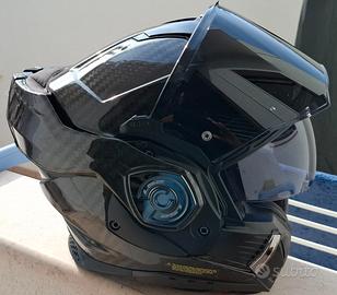 prezzo trattabile casco omposto in fibra di carbonio, colore nero lucido e provvisto di visiera chiara e scura e di occhiali incorporati