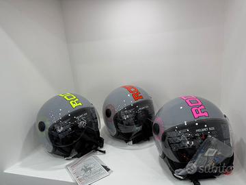 Casco Rodeo Drive • Casco: Demi Jet dalla forma tondeggiante di dimensioni contenuto • Calotta: in ABS ad alto impatto • Taglie: XS – S – M – L – XL • Materiale: EPS multistrato ad alta e bassa densità • Visiera: taglio ad elicotterista con rivestimento antigraffio • Interno: confortevole imbottitura rimovibile e trattamento anticarro ed antibatterico • Bordo della calotta: cuffia e cuscino paranuca in ecopelle • Chiusura: sottogola con fibbia micrometrica • Omologazione: ECE2206 • Progettazione: in Italia • Peso: gr.1050 ± 50