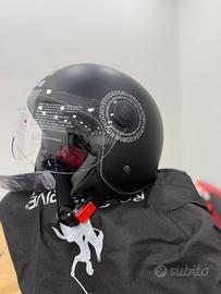 Casco Rodeo Drive – RD118 Decal • Casco: Demi Jet dalla forma tondeggiante di dimensioni contenuto • Calotta: in ABS ad alto impatto • Taglie: XS – S – M – L – XL • Materiale: EPS multistrato ad alta e bassa densità • Visiera: taglio ad elicotterista con rivestimento antigraffio • Interno: confortevole imbottitura rimovibile e trattamento anticarro ed antibatterico • Bordo della calotta: cuffia e cuscino paranuca in ecopelle • Chiusura: sottogola con fibbia micrometrica • Omologazione: ECE2206 • Progettazione: in Italia • Peso: gr.1050 ± 50 °Paga in store comodamente in 3 rate con KLARNA