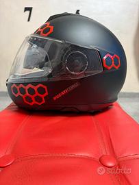 SCHUBERTH C4 pro colore Matt Black con decalcomanie ducati rimovibili. Taglia M 57-58 Interfono sena sc1 già installato di serie In ottime condizioni, usato poco. Uno dei caschi più silenziosi. Molto comodo con imbottitura soffice e avvolgente. Interfono SC1 di Sena con batteria che dura tutta la giornata in conversazione. Decalcomanie per Ducati rosse tranquillamente rimovibili. Mai cascato. Chiusura micrometrica. Visiera parasole Visiera pinlock già installata. Un casco top di gamma dí alta qualità.