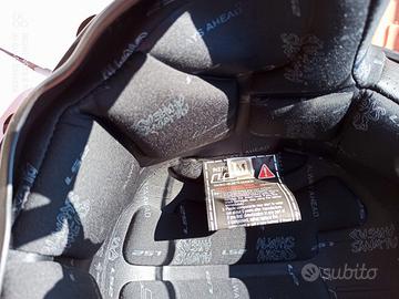 USATO POCHISSIMO MAI CADUTO*** NEMMENO UN GRAFFIO Interno perfetto (usato sempre bandana o cagoule/ non é insudiciato) Casco taglia M =>io ho una circonferenza capo 55/56cm Scatola d'origine Visiera trasparente + Visiera scura intercambiabile (ancora sigillata ) Protezioni orecchie ammovibili Ancora l'etichetta prezzo 89€..... ** NO spedizione !!!! DA PRENDERE a Feisoglio Alta Langa Grazie