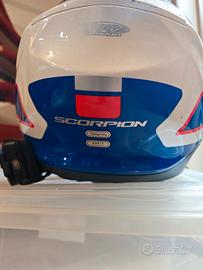 Vendo casco Scorpion ADX-2, modello da strada. È bianco con dettagli blu e rossi. - Visiera trasparente inclusa. - In buone condizioni. - Perfetto per chi cerca un casco sicuro e comodo.