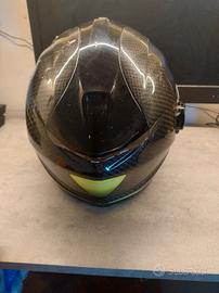 casco scorpion fibra di carbonio taglia L 60cm con dettagli in giallo fluo ha un po' di graffi dietro e altre usure dovute al tempo, con lente parasole integrato.