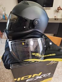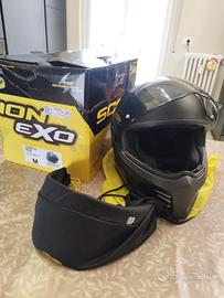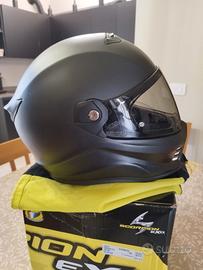 casco integrale in fibra Scorpion Covert FX, taglia M, nero opaco, con due visiere omologate (chiara e fumé). usato poche volte per una sola stagione da passeggera per brevi gite domenicali.