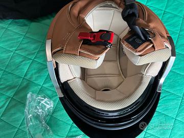 Vendo casco di cui annuncio mai indossato ed utilizzato in similpelle come da foto. Stile anni 80, con visiore marrone inserita + visiera trasparente in aggiunta . Misura XXL. Dalle foto si possono notare tutti i particolari e originalita'. Avvolto nella sua sacca originale. Oggetto nella sua confezione originale.