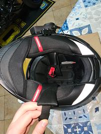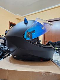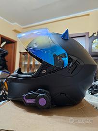 Completo di doppia visiera, una trasparente originale con pinlock e una blu. Interfono compreso perfettamente funzionante.