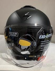 Casco Jet marcato Scorpion progettato per chi ha bisogno di un casco moderno, protettivo e pratico.
