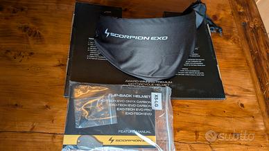 Casco Scorpion EXO-TECH ONIX carbon solid. Taglia S. Modello nuovissimo con sistema flip-back. Usato per meno di 2 ore. Vendo per problemi di taglia, la calotta non si adatta ala forma della mia testa e dopo un'ora mi procura mal di testa. Acquistato il 31 gennaio 2026 (scontrino disponibile per tutte le verifiche del caso) e praticamente mai usato se non per le 2 ore che dicevo prima. Ovviamente è in garanzia e soprattutto non è incidentato. Preferisco venderlo di persona per poterlo far esaminare, essendo un motociclista non voglio rischiare la sicurezza altrui. Il prezzo già basso rispetto al listino è comunque trattabile.