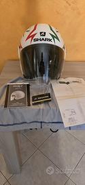Casco da moto Shark, mai utilizzato. Design moderno con inserti colorati.