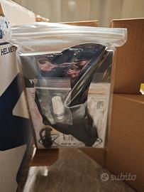 Come vedete, è presente il Pinlock ovviamente ancora sigillato, la busta con tutti gli accessori, la sacca grigia porta casco e la scatola.