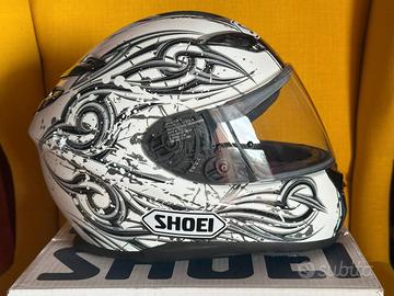 Casco SHOEI XR-1100 colorazione Hadron TC 6 taglia XL, indossato solo per prova e mai utilizzato, con due paia di guanciali (taglie 35 e 37), privo di para-naso, compreso sacco-custodia originale Shoei. La visiera è predisposta pinlock ma priva dello schermo anti-appannamento e presenta un graffio visibile in foto (che comunque non infastidisce la vista). Si invia in scatola Shoei di altro modello (Qwest).