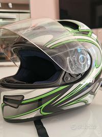 Casco AGV modello K5 grafica Hurricane nero, verde e bianco. Il K5 di AGV è un casco integrale di ispirazione dichiaratamente sportiva, ed ha la calotta realizzata in un misto di fibra di vetro e carbonio. Le dimensioni compatte e lo stile molto aggressivo lo rendono particolarmente adatto alle moto naked e stradali. Nel K5 non manca il visierino parasole interno a scomparsa, azionabile con facilità grazie ad un comodo comando esterno. Le imbottiture interne sono in Dry Comfort, completamente amovibili per il lavaggio mentre lavisiera, dotata di un innovativo sistema di regolazione, è amovibile senza l'utilizzo di utensili. Sistema di chiusura DD a doppi anelli. Sottogola e paranaso inclusi.