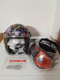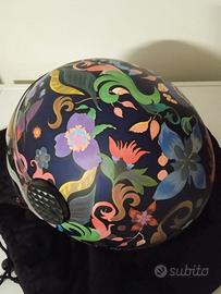 Splendido casco NUOVO mai usato modello SPHERE LUX BLOOM colore blue pink, completo di scatola, sacchetto nero contenitore in materiale antigraffio, visiera parasole applicabile nel suo imballo originale e adesivi vari per personalizzare.