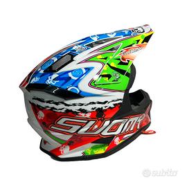 Casco da Supermotard/Cross/Enduro in Fibra di Carbonio, Carbon Kevlar, Fibra di vetro ACF, top di gamma Suomy, colori brillanti, peso contenuto, comfort e sicurezza ai massimi sistemi. Calotta per circonferenza testa di 57 cm. Listino di 449 euro. Indossato 2 volte da ragazza passeggera. Nessun segno. Praticamente e assolutamente nuovo. Completo di adesivi Suomy, libretto manutenzione e garanzia, custodia e scatola orginali. Svendo per inutilizzo a 180 euro perfettamente igienizzato. Vero affare