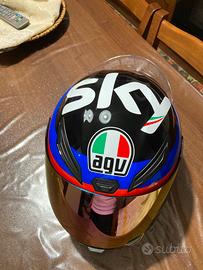 Vendo Casco bellissimo sky Di Valentino rossi PRATICAMENTE NUOVO, con visiera in foto ma ho anche quella originale trasparente ancora con pellicola.USATO 3 volte per uscita in scooter 50.. poi avendo preso la patente ho venduto la moto e di conseguenza anche il casco...