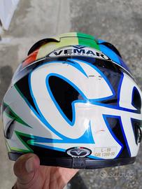 VENDO CASCO VEMAR MOTO GP REPLICA ALEX DE ANGELIS, TAGLIA 59 (L). IN BUONE CONDIZIONI, PRESENTA SOLO PICCOLI GRAFFI SUL LATO DIETRO PARTE BASSA. COMPRESA SCATOLA E SACCA PORTA CASCO.