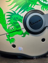 Casco Visor Jet Vespa 946 Dragon – Edizione Limitata – Taglia M Vendo casco originale Vespa Visor Jet “946 Dragon”, accessorio ufficiale abbinato all’esclusivo scooter in edizione numerata e limitata a soli 1888 esemplari, omaggio all’Anno del Drago del calendario lunare cinese. Il casco riprende fedelmente l’estetica del modello 946 Dragon: finitura oro, grafica del dragone con vibranti sfumature verde smeraldo, coperture laterali, supporti della visiera e rivetti esterni coordinati alla livrea originale dello scooter. ✅ Taglia: M (corrisponde a 57-58 cm di circonferenza testa) ✅ Tipologia: Visor Jet con visiera ✅ Omologazione: ECE 22.06 ✅ Materiale: termoplastico ✅ Accessorio originale Vespa (cod. 8H0004M030Q9ECE) Un oggetto raro, dall’estetica unica e raffinata. 📦 Disponibile a Milano/ spedizione concordabile.
