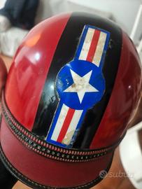 Vendesi raro casco d'epoca a scodella della AGV di Valenza. Pezzo autentico di modernariato motociclistico italiano anni '60/'70. Marchio: AGV (originale con etichetta interna). Grafica: Stella e strisce stile vintage. Interni: In pelle rossa originale, ben conservati. Condizioni: Ottima patina del tempo, completo di sottogola. IMPORTANTE: Oggetto venduto esclusivamente per uso espositivo, collezionismo o arredamento. NON omologato per uso stradale moderno. #AGV #Vintage #Casco #MotoEpoca #Vespa #Lambretta #Anni70 #Modernariato #PelleRossa #MadeInItaly #Collezionismo #CafeRacer #OldSchool #CascoScodella