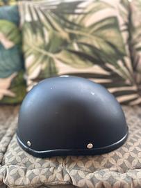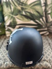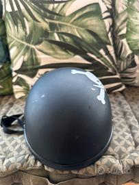 Vendo casco vintage demi-jet nero opaco con adesivo bianco ispirato a One Piece (Jolly Roger di Barbabianca).