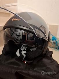 Vendo casco moto nuovo, mai usato con occhiali da sole incorporati a scomparsa, taglia xl un anno di vita scambio a mano