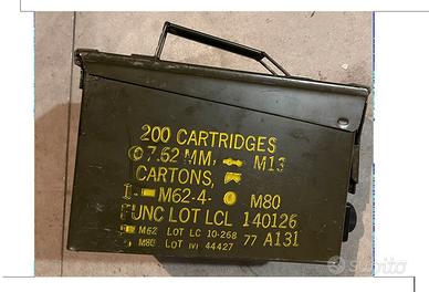 Cassetta militare originale in metallo per munizioni.