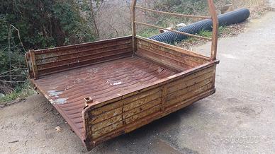 vendo cassone ape ad1/ae02/AE3/ ae01 ape 350/400/450 con pianale corto anni 60/70 e anche per p401 anni 80. il cassone presenta ruggine passante in alcuni punti ma come dalla foto del retro non ha buchi di ruggine sul pianale a parte ammaccature. il cassone ha un telaio per renderlo ribaltabile che si può smontare tramite un flessibile poiché è saldato.manca la sponda il prezzo è di 150€ non effettuo spedizioni ritiro a mano prezzo trattabile se interessati contattattarmi al numero 3387677127 o scrivermi un messaggio su subito