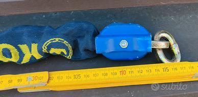 vendo per inutilizzo catena di sicurezza prodotta da König.La catena è rivestita in tessuto blu con il logo "KÖNIG live" stampato in giallo.