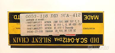 Vendo ottima catena di distribuzione DID SCA 0412 DHA per modelli HONDA e Yamaha, mai usata , tenuta nella scatolata originale, condizioni perfette.
