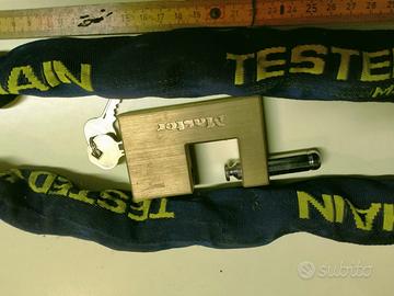 Catena + lucchetto per moto o altri usi - lunghezza 1 metro - tested chain con rivestimento esterno - completa di lucchetto Master e due chiavi originali - per qualsiasi usi - come nuove!