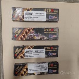 Vendo catene o-ring CZ nuove per Kart 60 100 125 TAG OK KF OKJ OKN passo 219 misure 96 98 100 102. Negli altri annunci ho anche delle DID oring 106 108 110 112 per completare la serie. Possibilità di venderle singolarmente.