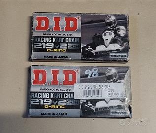 Vendo due catene o-ring DID SDH usate pochissimo per Kart 60 100 125 TAG OK KF OKJ OKN passo 219 misura 98. Negli altri annunci ho anche delle DID SDH oring nuove da 106 108 110 112 e delle CZ oring 96 98 100 102 per completare la serie.