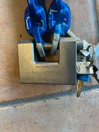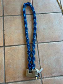 Catene antitaglio di sicurezza per moto di cui una con lucchetto blindato, le lunghezze sono una di 150 cm. e l'altra di 140 cm.