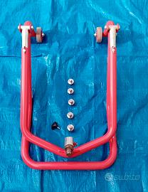 Cavalletto anteriore Bastef alzamoto con sottocanotto di sterzo,regolabile a varie altezze, completo di adattatori intercambiabili di vari diametri,prodotto in Italia, in ottime condizioni come da foto,per inutilizzo e sgombero box vendo (con formula visto e piaciuto nello stato in cui si trova) a 80 euro.